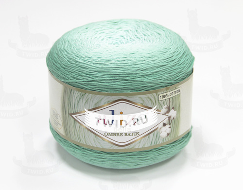 Состав:Хлопок 100% Вес мотка:250 г Метраж:900 м / 250 г Цвет:Мятный с переходом цвета Страна:Турция Производитель:Alize