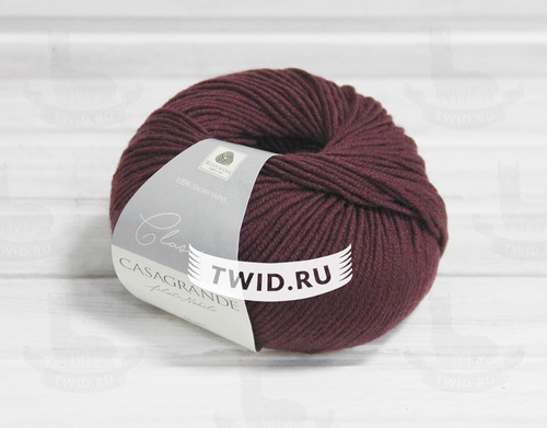 Состав:Меринос 100% Вес мотка:50 г Метраж:125 м / 50 г Цвет:Бордовый Страна:Италия Производитель:Casagrande filati Nobili