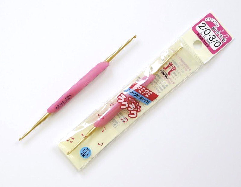 Два крючка в одном Raku Raku. Высококачественный металлический крючок двух размеров на одной прорезиненной ручке. Длина инструмента 13 см. Тонкие крючки имеют колпачок.