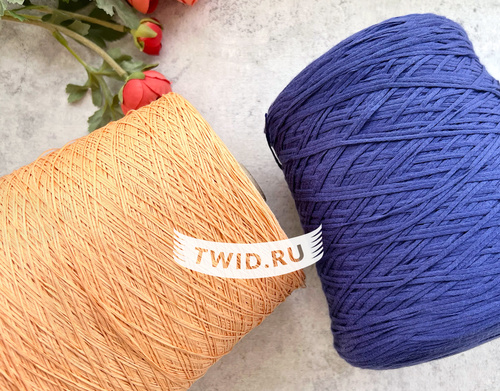 Набор хлопковых ленточек: Светло персиковый Waltz (425 м / 50 г) и синий васильковый Fancy (115 м / 50 г). Waltz 300 г + Fancy 300 г.