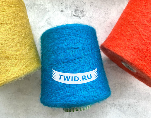 Набор из мохера Soft (жёлтый и голубой) и Antares (неоновый оранжевый), каждого по 150 гр. Общий вес набора 450 гр. (На фото изображены бобины большим весом).